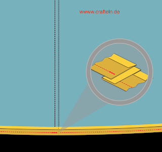 Der Rock ist im Original mit Schrägband sichtbar gesäumt, die meisten Probenäherinnen bevorzugten es, das Schrägband von außen unsichtbar zu verstürzen – beides ist möglich. Da der Rock eine wirklich große Saumweite hat, ist das Säumen mit Schrägband eine wunderbare Möglichkeit relativ zügig und ordentlich einen mit der Maschine genähten Saum zu nähen, damit die Trägerin möglichst schnell ihren Partyrock anziehen und sich damit drehen kann.