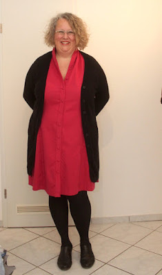 Ich glaube, es ist zu kurz für die Schau-mich-an-Farbe mit nackten Beinen. Aber mit dunkler Strumpfhose und Strickjacke und ohne Strickjacke ist es prima. Ich bin ja sowieso so ein Strickjacke-an-Strickjacke-aus-Mensch. Die meisten Räume sind für meine Geschmack ohnehin viel zu beheizt.