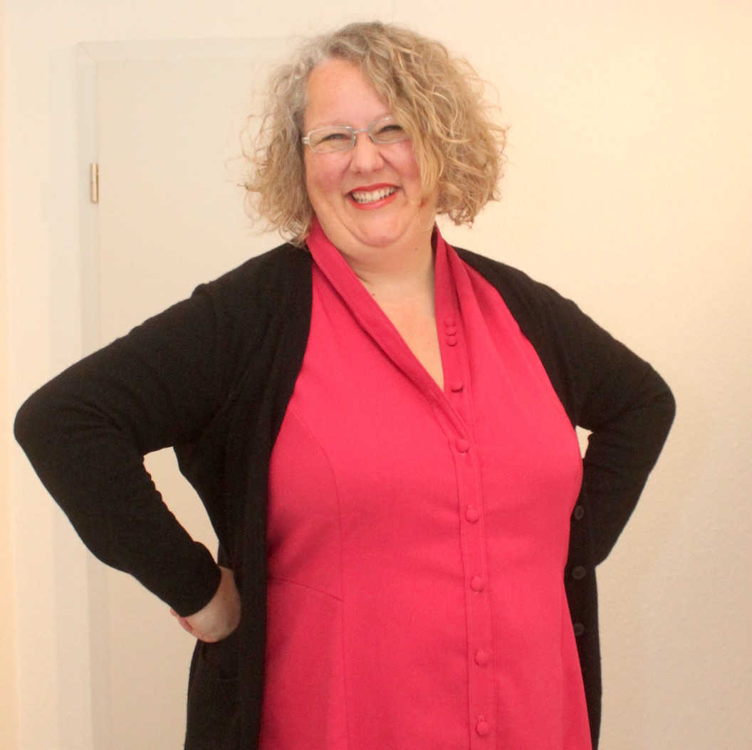 Das pinke Vortragskleid II, das ich für meinen Vortrag im Mai über die Kraft und Wirkung von Nähblogs genäht habe, ist eigentlich ein Sommerkleid – aber erstaunlicherweise trage ich es mit Strumpfhose noch lieber. Nachdem es einige Monate im Schrank verbracht hat, ist es nun zu einem absoluten Liebling geworden.