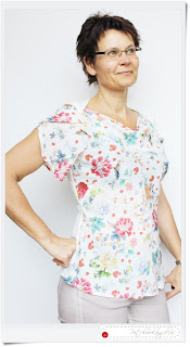 Am nächsten Tag zeigte uns PATCHWORKangel(a) eine Version, die mir insbesondere in ihrer Zartheit gefällt. Das Tulpentop wird so zum hauchdünnen Flatterblüschen und wirkt trotz Blümchen nicht zu mädchenhaft oder romantisch sondern sehr stylish.