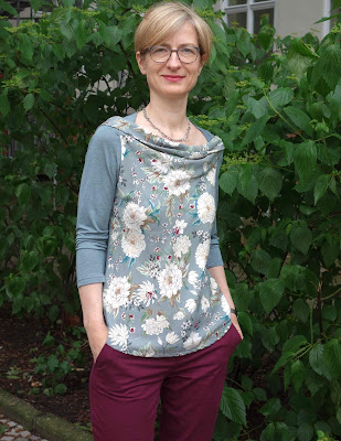 Auch das Tulpentop von Rock Gerda kombiniert eine geblümte Webware mit Jersey, als wäre das die perfekte Umsetzung des Schnittes und irgendwie finde ich das auch. Gerade durch die Kombination zweier so unterschiedlicher Stoffe wird deutlich, was das Tulpentop kann und je nachdem, wie frau es kombiniert, sieht es immer wieder anders aus.
