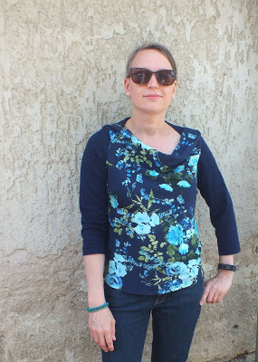 Auch das Tulpentop von Rock Gerda kombiniert eine geblümte Webware mit Jersey, als wäre das die perfekte Umsetzung des Schnittes und irgendwie finde ich das auch. Gerade durch die Kombination zweier so unterschiedlicher Stoffe wird deutlich, was das Tulpentop kann und je nachdem, wie frau es kombiniert, sieht es immer wieder anders aus.