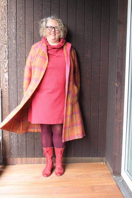 Glaubt mir, nicht jeder Tag ist ein Tag für ein Knaller-Outfit, aber manche Tage eben schon. Wie großartig ist, es dann auch noch mit gemütlichen Klamotten wie dem Ninjakleid und dem Stadtmantel – selbstgemacht und ganz den eigenen Farb- und Musterwünschen entsprechend – den großen Auftritt hinzulegen! In meinem Alter! Mit meiner Figur!