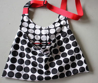 Ich nutze die Heldinnentasche seit Jahren. Sie ist so praktisch und schick! Alles, was ich griffbreit brauche, wie Mütze oder Handschuhe, kommen in die Außentasche und alles was sicher verstaut sein muß, ist sicher hinter einem Reißverschluß, den ich mit einer Hand öffnen kann, egal, auf welcher Seite ich die Tasche trage, versteckt. Eine zusätzliche kleine Tasche mit Klettverschluß, die auf die Innentasche genäht und in der Außentasche versteckt ist, heißt im Schnittmuster “Handytasche”, aber ich nutze sie für meinen Schlüsselbund.